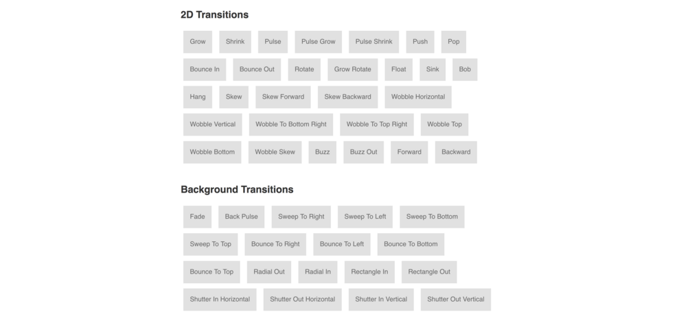 A collection of CSS3 powered hover effects to be applied to links, buttons, logos, SVG, featured images and so on. Easily apply to your own elements, modify or just use for inspiration. Available in CSS, Sass, and LESS.